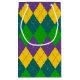 PURPLE GREEN GOLD MARDI GRAS DIAMOND PATTERN SMALL GIFT BAG