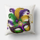 PURPLE GREEN GOLD MARDI GRAS MASK CUSHION