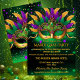 Purple Green Gold Masks Mardi Gras Birthday Party Invitation