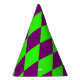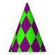 Geometric Purple and Green Color Harlequin Diamonds Checkered Shapes Pattern Design