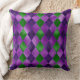 PURPLE & GREEN MARDI GRAS DIAMOND PATTERNS CUSHION