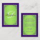 This monogrammed chartreuse green and purple scrolled wedding reception enclosure card matches the wedding invitation shown below. You can also use it for directions, a gift registry or wedding website card, or for an information card. If there are any other matching items you require, please email your request to niteowlstudio@gmail.com.