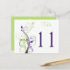This green, purple, and white floral table number postcard matches the wedding invitation shown below. **You must change the number 11 to each of the table numbers you need, add it to your cart, and then return and repeat the process until you have all the individually numbered cards that you need in your cart. Stand it on a small easel, or in your centerpieces. If you need assistance, email niteowlstudio@gmail.com.