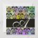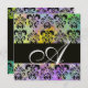 PURPLE GREEN YELLOW BLACK DAMASK MONOGRAM , white Invitation