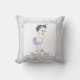 Purple and grey baby pillow with cute baby girl wearing a cute purple ruffle pants outfit on a purple and grey lace and bow background. This cute lavender and grey baby pillow is easily customised with the text of your choice. You can also delete the text and resize and move the baby as needed.