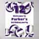 purple grey volleyballs birthday party welcome poster
