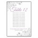 Make your wedding reception beautiful with these table number cards. They feature a simple yet elegant design with Lavender Purple & Grey text on a white background with a silver faux foil floral border. These cards include seating assignments so your guests will have an easy time finding the right table.