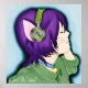 This design features a purple haired girl with cat ears and whiskers lost in the music from her headphones.