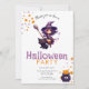 Purple Haired Witch and Black Cat Halloween Party Invitation