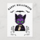 Purple Halloween Cat with Bats and Skeletons Postcard