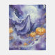 Cuddle up in a blanket that's as magical as Halloween night itself! This cozy throw features a whimsical ghost drifting through a purple-hued sky, guiding a trio of pumpkins under the moon's glow. It's the perfect blend of spooky and sweet—ideal for adding a touch of Halloween fun to your couch, bed, or favorite reading nook.