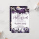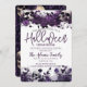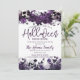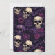 A gorgeous purple floral halloween party invitation. This moody goth purple and black design features flowers and skulls. Easy to customise with your own halloween open house party, or pot luck halloween themed party details.