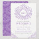 Purple hand drawn leaf monogram art wedding invitation