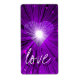 Modern design with a shining, sparkling purple and white heart on a glowing purple, white and black background. Label with a purple, black and white customisable design for you to personalise with your own text, images and ideas. Created by Jess Perry using original photographs and digital techniques.