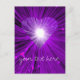 Modern design with a shining, sparkling purple and white heart on a glowing purple, white and black background. Postcard with a purple, black and white customisable design for you to personalise with your own text, images and ideas. The text can easily be changed using the template provided or click the 'Customise It' button to make further alterations. Created by Jess Perry using original photographs and digital techniques.