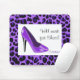 This mouse pad is perfect for any fashionista. It has a purple and black leopard print border with a purple high heel in the centre. It says Will work for shoes! You customise the name.