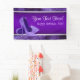 Purple and silver glitter high heel shoe womans birthday party banner. You can personalise this elegant purple high heel shoe party banner with your choice of text in the font style and colour of your choice.