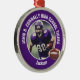 This cool customised high school football player photo Christmas ornament in purple features white typography of your team and player name. Personalise with your athlete name next to the ball.
