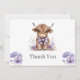 Show your appreciation in the most charming way with our Purple Highland Cow Thank You Card. Featuring an adorable highland cow surrounded by delicate floral accents, this card adds a rustic yet whimsical touch to your heartfelt message. Perfect for thanking guests after a farm-themed birthday party, countryside celebration, or any special occasion.