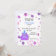 A big purple hippo wearing a party hat, ready for a birthday party accents this fun invitation. A border of cubes and fun designs adds a fun appeal. Customize with all of your information as desired.