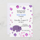 A big purple hippo with a sweet expression on his face, ready for a birthday party accents this fun invitation. A border of cubes and fun designs adds a fun appeal. Customise with all of your information as desired.
