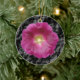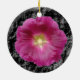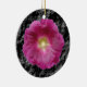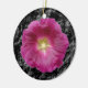 This ornament features a beautiful photograph of a purple Hollyhock flower. This photo was taken using macro photography for a richly coloured and detailed result. The deep colour of the petals contrasted with the pale yellow centre of the flower makes this Hollyhock a true natural beauty. The image is on the front and back of the ornament.