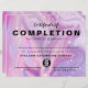 Purple Holographic Certificate of Completion design. If you want to change the font style, colour or text placement, simply click the "Customise Further" button. If you need my design on any other size or need help with your design, please don`t hesitate to contact me! More matching items in my store @Andreea Eremia Design