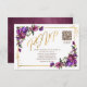 Purple Hot Pink Floral Gold Script QR Code RSVP