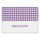 Simple yet elegant Houndstooth Table Number Card with a trendy purple and white houndstooth pattern background. Easy to customise with your wedding details. For more customisation options, click on the Customise It button.