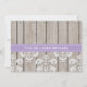 Pretty rustic style monogrammed mason jar bridal shower invitations with light purple lilac hued hydrangea flowers and a wooden fence and antique damask pattern lace background and stitched purple ribbon. These invites can be personalised with the initials and monogram of the bride and groom on the mason jar. These invites are perfect for a country, farmhouse, garden party or barnyard style wedding shower. Designed by Chrissy H. Studios, LLC.