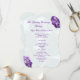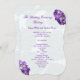 Pretty, purple hydrangea wedding program templates. Bracket shape can be changed and text is purple to match the realistic flower images decorating the front. Customise both sides with ceremony text.