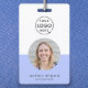 Simple, stylish corporate ID badge which can easily be personalised with your employee's ID photo, name, position, company logo, business details and QR code or barcode. The stylish design features modern minimalist typograhy and a colour block banner in lilac lavender purple to stand out from the crowd. The image shown is for illustration purposes only to be replaced with your own photo. The placeholder image is of a happy woman with wavy blone hair.