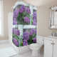 This shower curtain features an impressionistic rendition of purple hydrangea blossoms growing by a seaside cottage in Connecticut.