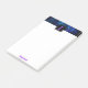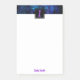 Shades of blue and hints of purple are highlighted over a black background along the notepad top. The combination sets off the black square plate with a purple initial letter monogram that you personalise. Change the monogram letter and name in the template fields.
