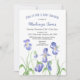 A lovely gender neutral watercolor baby shower invitation featuring spring flowers, purple iris, on a white background.
