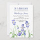 A lovely birthday brunch watercolor invitation featuring spring flowers, purple iris, on a white background.