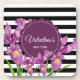 Purple Iris Botanical Black White Stripes Pattern Coaster