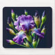 Vibrant purple irises stand out with their richly textured petals against a dark background