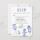 An elegant RSVP card featuring purple irises, along with meal options on the bottom.