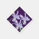 Paper party napkins with image of beautiful purple Iris flowers against a deep purple background.
