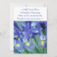 Colour floral photograph of purple iris flowers in a flower vase. Personalise this purple irises flower invitation with your own message and images to make your own special flower invites.