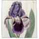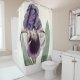 Shower curtain with a botanical painting of a purple iris.
