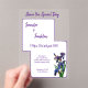 This stylish purple iris watercolor wedding invitation can be personalised with your own heading, your names, the date & time of the ceremony, the location and some additional invitation. Because the acrylic invitation does not have more room it should be coupled with an RSVP card or enclosure card with additional information for response, wedding registry information and additional information such as travel and accommodation,