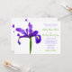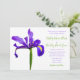 The text and background colour on this purple iris wedding invitation is fully customisable. To change the text, use the personalise option. For more extensive changes, such as changes to the font, font colour, background colour, or text layout, use the customise option. This invitation is set to print on white linen paper. It also looks great on the plain and felt paper types. You can change the paper type, if you'd like, under invitation options. Although this invitation is currently customised for a wedding, it could be used for a variety of other special occasions, such as a wedding anniversary, bridal shower, birthday party, garden party, etc. All you need to do is change the text.