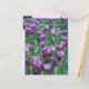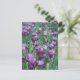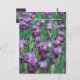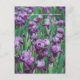 Elegant postcard with purple irises symbolising wisdom and friendship.
