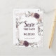 Modern floral design features dark purple and ivory roses surrounded by soft green and ivory vines. Very hip and trendy botanical elements surround Save the Date, your wedding date and names. Your couple's photo is included on the back along with more information. All of the text is editable. This save the date postcard is part of the Purple Sage collection. It contains the templates you can use to create a unique and personalised is save the date suite.