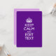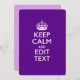 Your personalised Keep Calm saying on a fine custom deep purple accent colour decor. A personalised Keep Calm style saying on a one of a kind gift. Humourous or whimsical try on your creative words on two editable lines of text. Remember to use CAPITAL letters for best results.