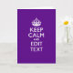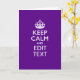 Your personalised Keep Calm saying on a fine custom deep purple accent colour decor. A personalised Keep Calm style saying on a one of a kind gift. Humourous or whimsical try on your creative words on two editable lines of text. Remember to use CAPITAL letters for best results.