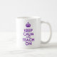 Customisable purple and white "Keep Calm and Teach On" text design. An inspirational coffee mug for your favourite teacher. You can create your own, change the wording, including changing the font size as needed.
