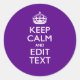 Purple Keep Calm And Your Text Easily Classic Round Sticker